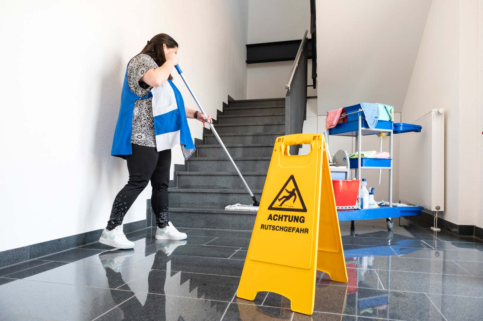 Gerade in stark frequentierten Bereichen (Küche, Sanitäranlagen, Empfang) reduziert regelmäßige Reinigung Krankheitsrisiken.
